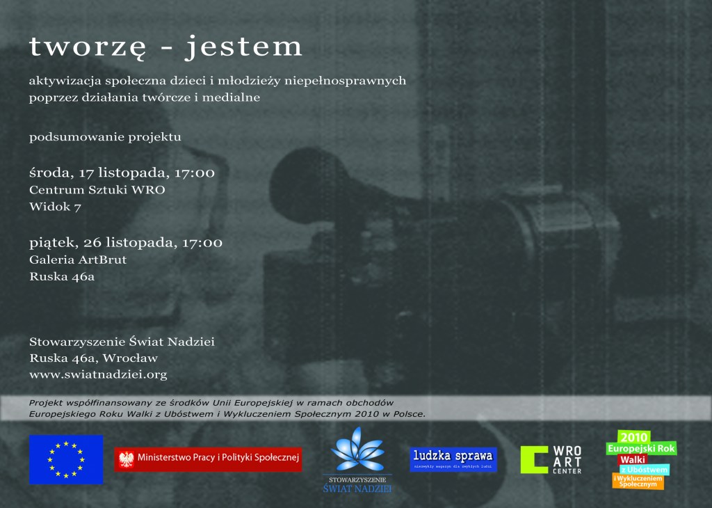 Telewizja Wrocław wyemitowała reportaż z wydarzeń projektu „Tworzę-Jestem” w cyklicznym programie „Europejczycy” prezentującym projekty unijne realizowane na Dolnym Śląsku. Wielokrotnie emitowana była kilkuminutowa zapowiedź programu.